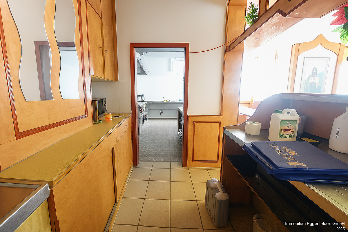 Der offene Gastraum bietet eine optimale Größe für ausreichend Gäste und dennoch überschaubarem Bewirtungsaufwand. Familienfeiern oder Ähnliches könnten hier ebenfalls in gemütlicher Runde abgehalten werden. Zusätzlich vorteilhaft in Hinsicht auf den To-Go-Bereich sind die nahe liegenden Schulen, die Büros und Praxen, sowie die zahlreichen Wohnhäuser unmittelbar um das Objekt.