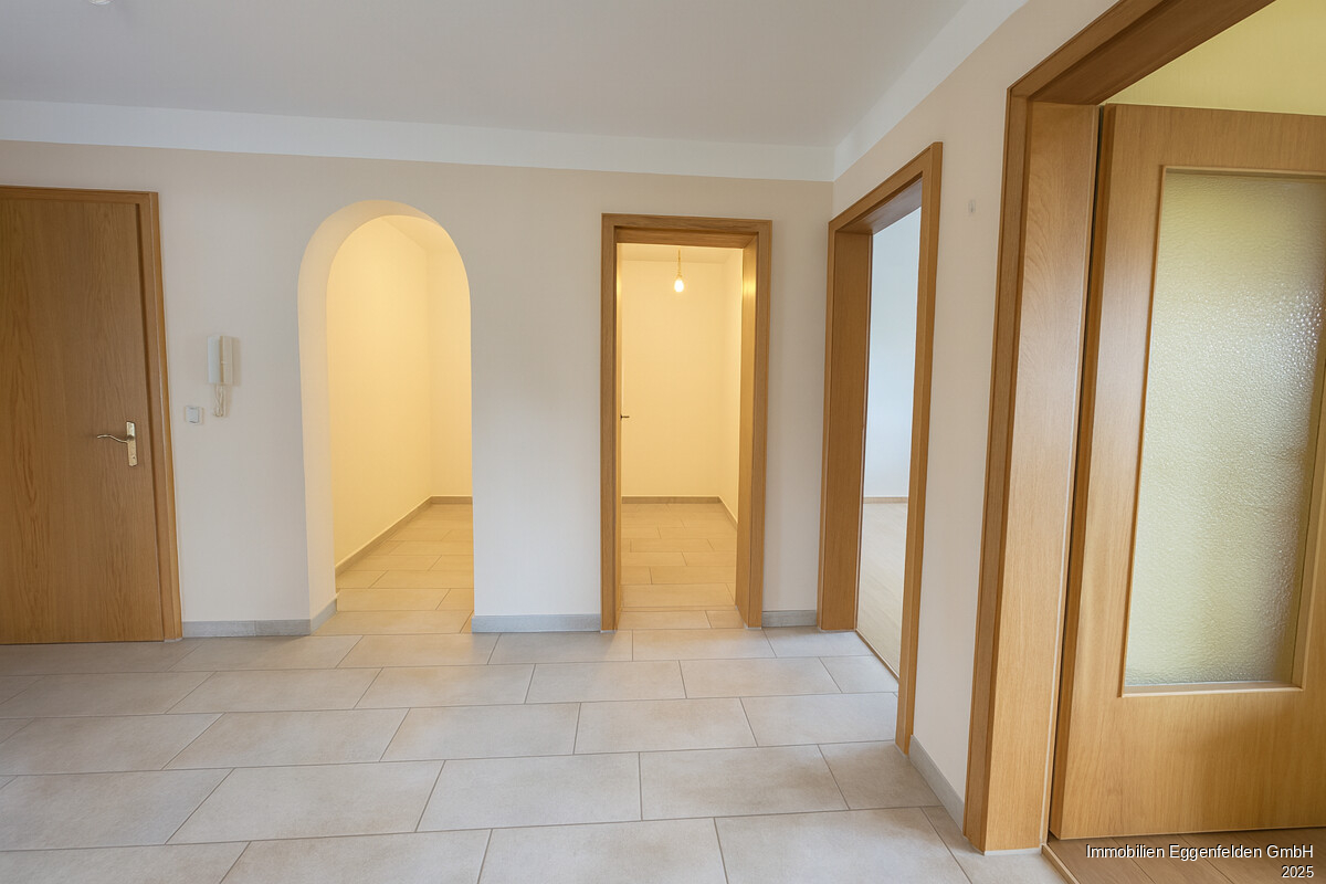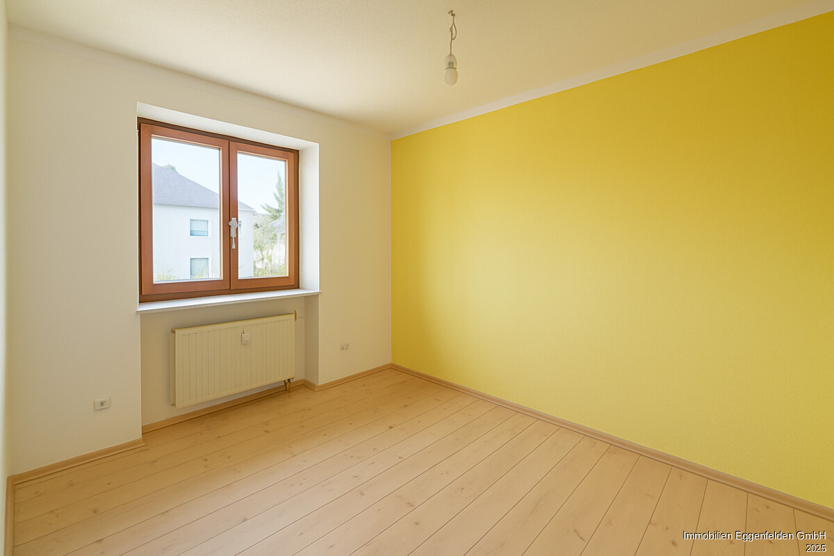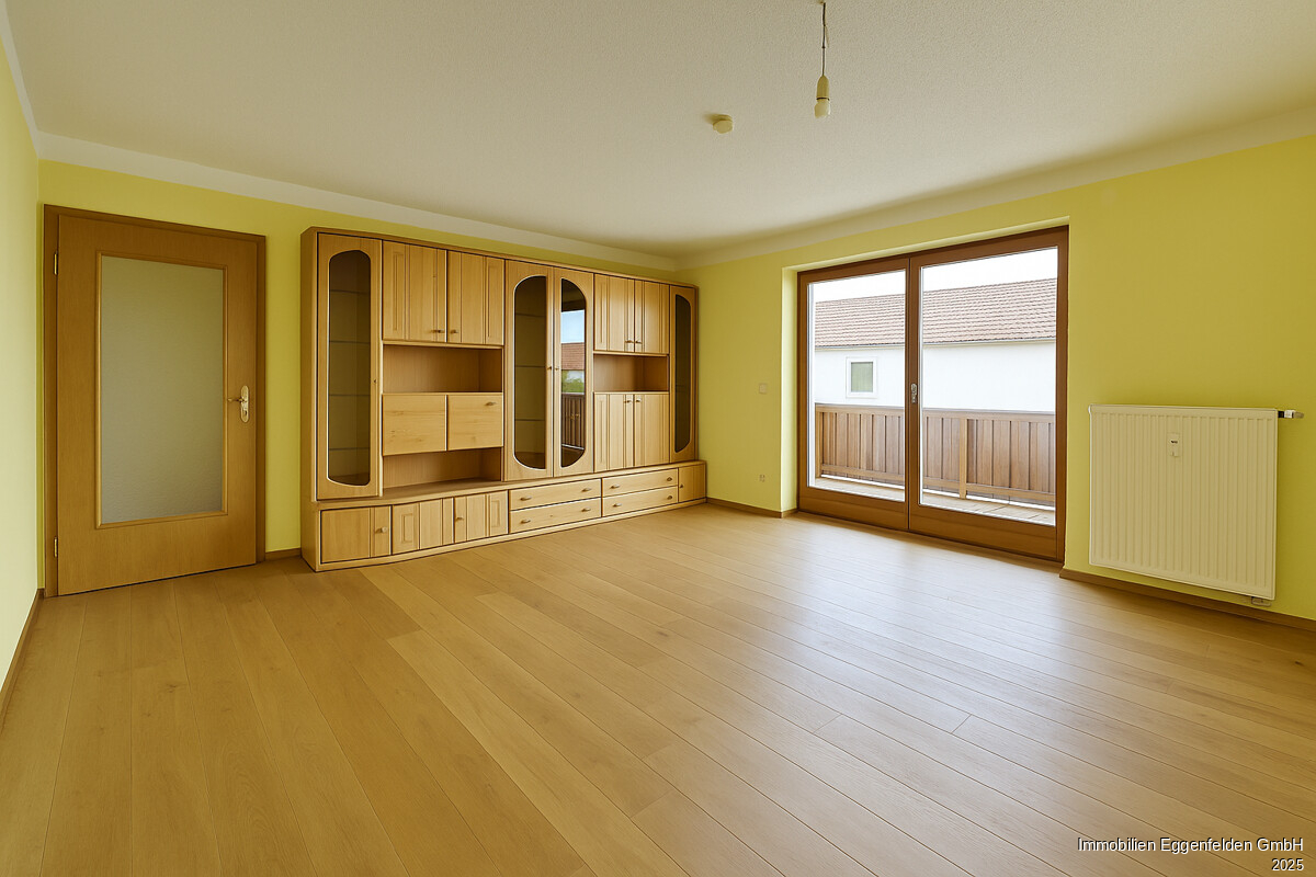 Die Wohnung liegt im Obergeschoss eines soliden, massiv gebauten 3-Familienhauses in der Rothfeldsiedlung in Massing. Schon beim Betreten fällt der praktische Grundriss ins Auge: Ein zentraler Flur verbindet alle Räume miteinander und sorgt für eine klare, gut nutzbare Aufteilung.