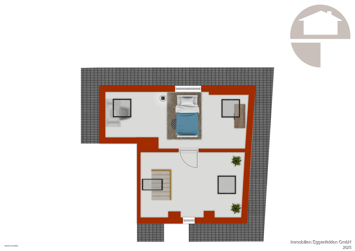 Das Dachgeschoss bietet zwei weitere, helle Schlafzimmer und eignet sich ideal für Kinder, Gäste oder als Homeoffice-Bereich.