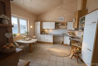 Betreten wird die Wohnung über das einladende Treppenhaus und führt zu dem Zugangsbereich der Wohnung im Ersten Stock, der nur von Ihnen benutzt wird und daher uneingeschränkt zur Verfügung steht. Über die Wohnungstüre kommen Sie in den zentralen Flur, der Zugang in alle Zimmer bietet. Unmittelbar gelangen Sie in die großzügige Küche mit Einbauküche, welche im Preis inbegriffen ist. Ein heller und weitläufiger Raum, der durchaus auch noch für eine gemütliche Essecke Platz bietet zeigt sich hier mit vielen Möglichkeiten. Um lange Wege zu vermeiden, besteht über eine Schiebetüre Zugang in den Wohnbereich, dem Zentrum der Wohnung. Gemütlichkeit und einladendes Ambiente garantiert der gut platzierte Schwedenofen. Die imposante Deckenhöhe von fast 3,5 m und der hochwertige Echtholzparkett lassen den Raum zu einem wahren Empfangsbereich Ihrer Freunde und Familie werden. Absolutes Highlight ist die doppelflüglige Glastüre auf den Balkon, die herrliche Aussicht bietet und das Zimmer zu einer hellen Wohlfühloase werden lassen.