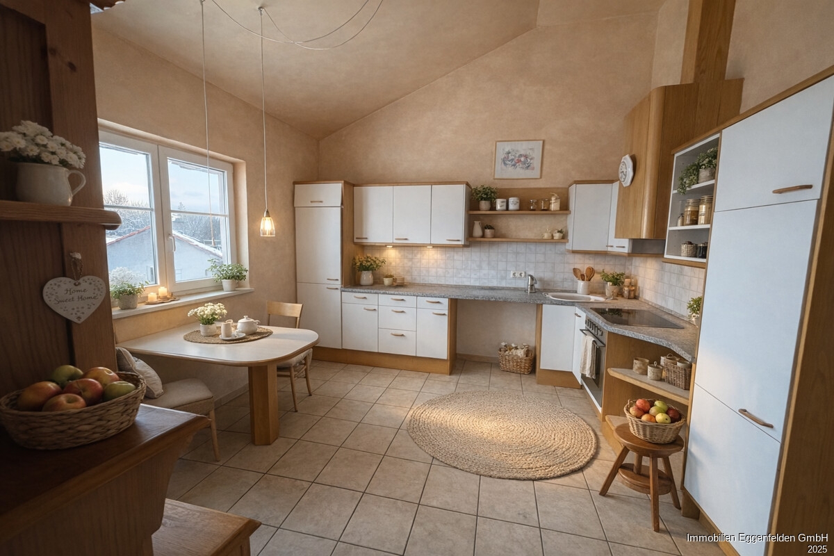 Betreten wird die Wohnung über das einladende Treppenhaus und führt zu dem Zugangsbereich der Wohnung im Ersten Stock, der nur von Ihnen benutzt wird und daher uneingeschränkt zur Verfügung steht. Über die Wohnungstüre kommen Sie in den zentralen Flur, der Zugang in alle Zimmer bietet. Unmittelbar gelangen Sie in die großzügige Küche mit Einbauküche, welche im Preis inbegriffen ist. Ein heller und weitläufiger Raum, der durchaus auch noch für eine gemütliche Essecke Platz bietet zeigt sich hier mit vielen Möglichkeiten. Um lange Wege zu vermeiden, besteht über eine Schiebetüre Zugang in den Wohnbereich, dem Zentrum der Wohnung. Gemütlichkeit und einladendes Ambiente garantiert der gut platzierte Schwedenofen. Die imposante Deckenhöhe von fast 3,5 m und der hochwertige Echtholzparkett lassen den Raum zu einem wahren Empfangsbereich Ihrer Freunde und Familie werden. Absolutes Highlight ist die doppelflüglige Glastüre auf den Balkon, die herrliche Aussicht bietet und das Zimmer zu einer hellen Wohlfühloase werden lassen.