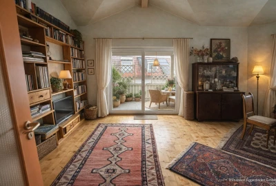 Im ersten Stock eines gepflegten Zweifamilienhauses befindet sich diese offen gestaltete Wohnung, die mit ihren hohen Räumen mit bis zu 3,5 Metern Raumhöhe für Loft-Atmosphäre sorgt.