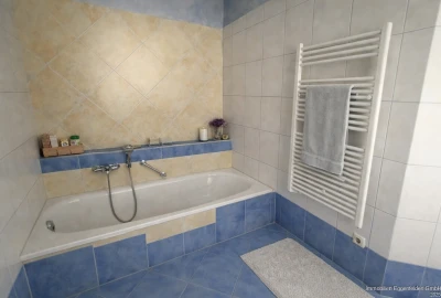 - Badezimmer mit Wanne, Dusche, WC und Handtuchtrockner